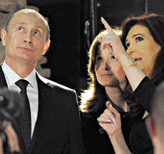Argentina y Rusia ratificaron el carácter estratégico de la relación entre ambos países ayer, durante la visita que hizo el presidente Vladimir Putin a Buenos Aires, donde fue recibido por Cristina Fernández de Kirchner. “La Argentina tiene su propia opinión y posición en asuntos internacionales, tiene su propia opinión soberana, algo que es muy importante y bastante raro en el mundo de hoy, y valoramos altamente esta posición”, destacó el mandatario ruso durante la declaración de prensa conjunta que dieron ambos por la tarde, luego de que se firmaran acuerdos en materia energética, judicial, científica y de comunicaciones. Fernández de Kirchner, por su parte, señaló que las coincidencias entre ambos países “revelan el carácter estratégico de la relación” en el marco de “situaciones internacionales frágiles y de gran conflictividad”. Luego de compartir, por la noche, una cena de honor, Putin partió hacia Brasil, donde volverá a encontrarse el miércoles con la jefa de Estado argentina durante la cumbre conjunta de los países del Brics y la Unasur.