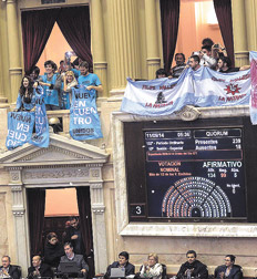 Durante toda la madrugada, algunos cruces discusivos sacudieron la modorra de los diputados en la extenuante sesión, en la que las más de 120 intervenciones terminaron de confirmar un final previsible. El oficialismo tuvo que lidiar solo junto a sus aliados para aprobar la ley.