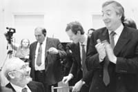 En un sector de la New School diferente de donde se realizó el almuerzo (todo en el Village de esta ciudad, uno de los barrios más hermosos, cerca de Washington Square), Kirchner y Stiglitz tuvieron su primer encuentro, rodeados de murales del artista mexicano José Clemente Orozco, con imágenes de Lenin, Gandhi, trabajadores enfervorizados y alegorías del imperialismo. Stiglitz felicitó a Kirchner por haber negociado de la manera en que lo hizo con el Fondo y haber obtenido la chance de alcanzar un tres por ciento de superávit primario –y no más–, y por no haber transigido en incorporar en el arreglo compensación alguna a ningún sector privado. También el profesor le preguntó por la situación del Banco Nación y se congratuló al saber que no fue privatizado. Finalmente, Stiglitz lo felicitó por la recuperación económica que está viviendo al Argentina “sin la ayuda del Fondo”.