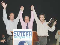 El sábado por la noche, el secretario general del gremio de trabajadores de edificios, José Santa María, fue el anfitrión en una cena de más de 10.000 afiliados en la Rural. El Suterh festejaba su día y tuvo invitados especiales como el jefe de Gobierno porteño, Aníbal Ibarra, y el jefe de Gabinete, Alberto Fernández –ambos en la foto con Santa María–. También estuvieron presentes el ministro de Trabajo Juan Carlos Tomada, y el electo vicejefe porteño, Jorge Telerman. Santa María habló de la prioridad que le da su sindicato a la educación y de la necesidad de justicia social.