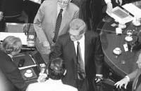 Mucho más coherente que los radicales, el riojano Eduardo Menem ejerció una firme defensa del cortesano. Consideró que es víctima de una “persecución” que tiene claros fines políticos. Trajo al recinto un estudio realizado por instituto de la UBA donde se sostiene que en el 91 por ciento de las acordadas “la famosa mayoría automática no actuó como tal”. Para el riojano no hay dudas que detrás de este proceso “hay una estrategia política del gobierno que no termina en el doctor Moliné. Ya les tocará el turno a los restantes”. Finalmente, Menem anunció su rechazo a la suspensión porque “no quiero ser instrumento de la venganza”.