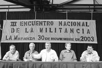 La Universidad Nacional de La Matanza fue el escenario del III Encuentro Nacional de la Militancia organizado por el Grupo Michelángelo, que agrupa a dirigentes justicialistas de todo el país que se encolumnan en apoyo de las políticas del presidente Néstor Kirchner. Con la presencia del ministro de Trabajo, Carlos Tomada, y del subsecretario general de la Presidencia, Carlos Kunkel, más de mil doscientos militantes avanzaron sobre las formas de recomponer el peronismo tanto a nivel interno como en la relación con otras fuerzas políticas que adhieran al kirchnerismo. “Trabajar para profundizar la construcción de un frente para la victoria del pueblo argentino es la tarea a desarrollar en el 2004”, explicó Kunkel.