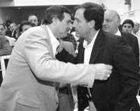 Angel Rozas y Roberto Iglesias, contendientes por la conducción de la UCR, a los abrazos.