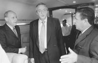 En la comitiva oficial también llegaron el ministro de Economía, Roberto Lavagna, el senador peronista Ramón Puerta, el secretario de DerechosHumanos Eduardo Luis Duhalde, y el vocero presidencial Miguel Núñez, entre otros funcionarios.