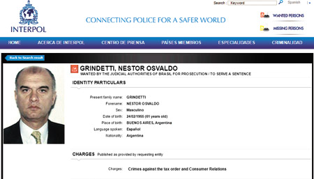 Después de verse involucrado en el escándalo de los Panama Papers, por su rol en una compañía offshore en un paraíso fiscal, el intendente de Lanús, el macrista Néstor Grindetti, sumó un nuevo inconveniente: ayer se supo que figura en una circular roja de Interpol, con pedido de captura internacional (ver imagen tomada ayer de la web oficial de Interpol). Desde el entorno del ex secretario de Hacienda de Mauricio Macri en la Ciudad de Buenos Aires aseguraron que la orden de captura ya fue levantada por la Corte Criminal de Curitiba-Paraná, Brasil, el pasado 30 de marzo. Según explicaron, Grindetti enfrentó una causa por su actuación en Socma, del Grupo Macri, por la que llegó a ser requerida su prisión preventiva y su extradición, que en el país recayó en el juzgado a cargo de Daniel Rafecas.