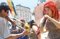 En la manifestación de ayer, que se mantuvo todo el día bajo el sol rajante, junto con los aborígenes hubo gente de asambleas barriales, del MTD de Solano, de Raíces Indianas y algunos activistas internacionales que habían venido a un encuentro de “pensamiento autónomo” que se hizo la semana pasada en Roca Negra. A última hora habían recibido la visita de un desfile de varias secretarias y secretarios, incluido el de Fernández, pero ninguna respuesta ni propuesta. A la noche discutían en asamblea, plantados en el mismo lugar, los pasos a seguir.