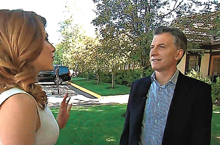 “Usted dijo que el país necesita alrededor de 100 mil millones de dólares de inversiones en los próximos años. Cuénteme sobre ese dinero y de dónde vendrá”, lo interrogó la periodista de la CNBC, y Macri respondió: “Vendrá de todo el mundo y quiero que así sea. Si todo viene de China, va a ser una relación desbalanceada con el mundo. China ha sido muy agresiva, están listos para poner toda la plata que necesitamos para invertir, para comprar nuestras compañías. Pero quiero una situación balanceada en mi país”.