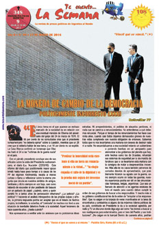 El domingo 27 de abril de 2014, los represores del Pabellón 5 del módulo “lesa humanidad” de Marcos Paz, conocidos como los duros, comenzaron a publicar Te cuento... La Semana. Es una furiosa revista digital que en dos años pasó de dos a catorce páginas y se presenta como la voz de los “presos políticos” de varias cárceles del país. Tiene cartas de lectores, la sección “Resistencia”, un chiste como editorial y fotos que aparecen en peligrosa clave de escarnio público. Lejos de parecer pobres ancianos al borde de la muerte, propulsan campañas contra los juicios y coordinan estrategias para obtener prerrogativas como las domiciliarias.