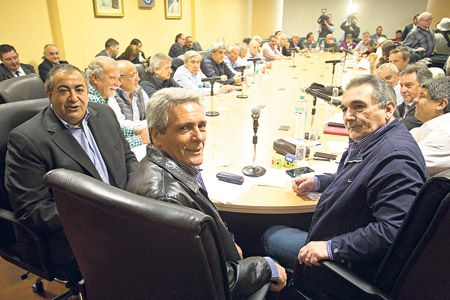 Héctor Daer, Carlos Acuña y Juan Carlos Schmid, a la cabecera del primer encuentro cegetista.La sede de la CGT en Azopardo 802 volvió a funcionar como único búnker cegetista. El flamante consejo directivo de la central obrera unificada se reunió ayer por primera vez con la presencia de todos sus integrantes. En el cónclave los sindicalistas acordaron solicitar reuniones formales con los ministros de Trabajo, Salud, Economía y Producción. “El empleo, la inflación, ganancias, jubilados, tarifas, el tema de la pobreza y los efectos de la libre importación”, fueron algunos de los puntos que se abordaron en la reunión y que llevarán a los funcionarios del gobierno nacional.