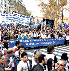 “Recuerden que esta marcha no es para pedir por los milicos, por los juicios, sino por los compañeros que no tienen trabajo”, explicó Bonafini en la inauguración de la ronda. Hoy cierra la manifestación con un gran acto con artistas, cantantes y representantes políticos y sindicales.