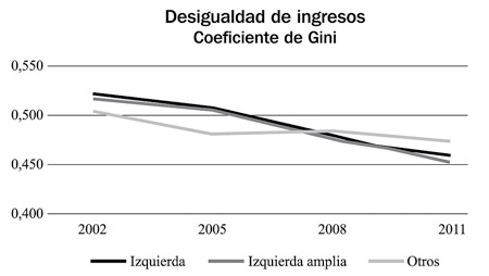 En un libro recién publicado*, el sociólogo Marcelo Leiras, director del departamento de Ciencias Sociales de la Universidad de San Andrés, no oculta su sorpresa al constatar que en los países que fueron gobernados en este lapso por lo que él llama la izquierda, se produjo una reducción del desempleo y de la desigualdad superior a la del resto de los países, aunque las condiciones globales fueron las mismas para todos. Leiras enumera como países que tuvieron gobiernos de izquierda durante periodos extensos a la Argentina, Bolivia, Brasil, Chile, Ecuador y Venezuela. Como Izquierda Amplia considera a esos mismos países más aquellos donde por lo menos hubo un gobierno de izquierda aunque fuera breve (el Salvador, Honduras, Nicaragua y Paraguay) y como Otros a Colombia, Costa Rica, Guatemala, Guyana, Honduras, México, Panamá, Perú y Surinam. Leiras destaca que los países con gobiernos de izquierda,