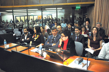 –Está bien, los testigos que hablarán durante el juicio –explicó Rodrigo Giménez Uriburu– pueden quedarse en la sala hasta que se resuelva el planteo, pero después haremos un cuarto intermedio y luego se van. Allí era el momento del comienzo formal del juicio: las declaraciones indagatorias de los acusados.