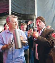Mauricio Macri dejó ayer, al menos por un rato, su fanatismo por el cantante Freddie Mercury. De look informal, el Presidente asistió a Tecnópolis para la inauguración de un festival de música tropical. Acompañado por Hernán Lombardi (que llevaba una colorida camisa a tono con la ocasión), Macri se mostró junto a figuras de la bailanta como Ariel Puchetta, Hernán Coronel (del grupo “Mala Fama”) y el animador Daniel “La Tota” Santillán, entre otros. Batió palmas, agitó el güiro, coreó “Amores como el nuestro” y se tiró unos pasos. Todo fue debidamente registrado, editado y difundido en las distintas redes sociales oficiales.