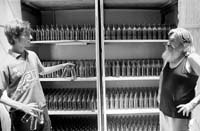 Agustín muestra las máquinas para hacer cerveza: “En esta al mosto se le agregan las flores de lúpulo, o una resina ya preparada que le da, a la base de la malta, el amargor y el aroma propio de la cerveza. Es importante el momento del proceso en que agregamos el lúpulo, porque de eso depende el gusto de la cerveza. Nosotros hacemos una artesanal tipo ale, que es muy distinta a la que se compra comercialmente, del tipo lager. También fabricamos una imperial stout que hacemos bien cargada. Y tenemos la bolch pale ale, que a mí tanto no me va pero a mucha gente le gusta porque deja un toque dulzón en la boca”.