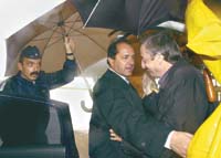 Ya en Buenos Aires, en el aeroparque Jorge Newbery lo recibieron, paraguas en mano, el vicepresidente Daniel Scioli y el secretario general de la Presidencia, Oscar Parrilli. Pese a que tenía listo el helicóptero, el Presidente prefirió utilizar el automóvil oficial, algo inusual en él. Tal vez la preferencia tuvo que ver con que llovía, el vuelo podía ser más turbulento de lo habitual y el Presidente prefirió evitar nuevas complicaciones. Una de las críticas que se le vienen haciendo a Kirchner tiene que ver con su desatención a los temas referidos a su seguridad personal. Incluso, en poco tiempo, ya tuvo dos sustos con helicópteros que se cayeron de poca altura.