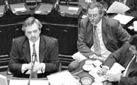La tranquila sesión sólo tuvo un momento de tensión y fue cuando el diputado kirchnerista Miguel Bonasso denunció que “fuerzas antidemocráticas conspiran contra el Gobierno”. Bonasso acusó a grupos “fascistoides” de “promover el golpe” e incluyó en la denuncia al conductor televisivo Mariano Grondona. La denuncia no pasó a mayores pero sirvió para romper la monotonía y de paso advertir sobre las resistencia que genera el gobierno de Néstor Kirchner.