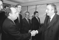 Junto al Presidente se encontraban el canciller Rafael Bielsa, el embajador argentino en Estados Unidos, José Bordón, el jefe de los diputados justicialistas, José María Díaz Bancalari, los presidentes de las comisiones de Relaciones Exteriores del Senado y la Cámara baja, Ramón Puerta y Jorge Argüello, respectivamente, el senador catamarqueño Oscar Castillo (UCR) y el gobernador entrerriano Jorge Busti.