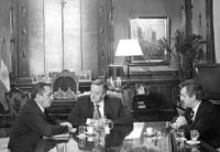 Las duras críticas buscaron aislar a los bonaerenses. La estrategia se completó con la ronda de diálogo que Kirchner mantuvo con más de una docena de gobernadores, a quienes encuadró dentro de su prédica de llegar a un acuerdo consensuado.