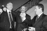 - “Felipe es el gran responsable. El obligó a salir a Kirchner y a Duhalde. Le mojó la oreja a Kirchner y el Gobierno le dio como en bolsa. Cuando lo estaban pateando en el piso, Duhalde tuvo que defenderlo, es que al fin y al cabo es el gobernador de su provincia que queda colgado del pincel. Es la segunda vez que el Negro debe aparecer para ayudar la gobernabilidad de Solá: la anterior fue cuando la crisis por la seguridad. Ahí fue Duhalde quien mocionó a Graciela Giannettasio como ministra interina de Seguridad, comprometiendo al duhaldismo en el problema. Y ayudó a la designación de León Arslanian.” Palabra más, palabra menos, esa es la explicación de dirigentes duhaldistas de buena relación con el gobierno nacional.