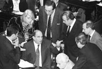 Como no sucedía hace mucho tiempo en la Cámara baja, los radicales mostraron un rostro opositor. Decididos a rechazar a rajatabla la iniciativa oficial, el reducido bloque se expresó a través de Federico Storani. El ex ministro del Interior de la Alianza recordó la participación argentina en la primera Guerra del Golfo. “Luego sufrimos los atentados a la AMIA y la embajada israelí a pesar de que fuimos a partir de una ley de la Nación”, indicó para luego agregar que “la existencia de una ley no nos otorga un bill de indemnidad”. Por otra parte, Storani señaló que la resolución de las Naciones Unidas que provoca este debate se produjo luego de que “los Estados Unidos derrocaran a (Jean Bertrand) Aristide” por lo que se está lejos de ir a una misión para mejorar la situación irregular que vive esa nación. El justicialismo lo escuchó en silencio.