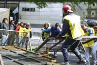 El cruce con los piqueteros se produce en un momento de redefiniciones del movimiento. Los cambios pueden sintetizarse en dos datos. El primero es que un grupo de organizaciones ha dado su apoyo al kirchnerismo, con un frente que reunirá a agrupaciones vinculadas a la CTA (la Federación de Tierra y Vivienda de Luis D’Elía, Barrios de Pie y el Frente Transversal) y otras nacidas luego de la asunción de Kirchner, como el MTD Evita. El segundo es que el resto del arco piquetero ha unificado un reclamo por la universalización de los planes de empleo, un objetivo que se había desdibujado y desaparecido del escenario público luego de la masacre de Avellaneda. La represión, las campañas electorales, el proceso de fragmentación de los piqueteros dejó en un segundo plano ese pedido, que recién ahora están buscando reinstalar la discusión sobre las demandas básicas. Ni qué hablar del reclamo por trabajo genuino, que directamente parece desvinculado de las organizaciones de desocupados.