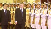 Cuando las tropas volvieron, quedó claro que se había tratado de un ensayo. Sólo que esta vez en la tarima estaban parados el presidente Néstor Kirchner y su colega chino Hu Jintao. Detrás de ellos, la comitiva argentina de un lado y la china del otro. En el medio de los dos grupos, Cristina Kirchner y la señora de Hu y su medio metro de diferencia en la altura de ambas. La banda del Ejército tocó los himnos. El argentino, notablemente bien. Captó el ritmo sin la equivocación de quienes tocan en los Mundiales. El chino tiene ritmo de marcha militar. Es posterior a 1949, el año de la revolución encabezada por Mao. Kir-chner, saco abierto y mocasines, guiado por Hu, pasaron revista dentro de ese recinto gigantesco: igual que la Iglesia en la Edad Media, el socialismo de Estado de China, como el de la Unión Soviética, querían impresionar internamente por su poder y marcar externamente una paridad en la simbología de las potencias.