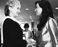 A la mesa de Hillary y Cristina se sentaron también la ex primera ministra de Canadá Kim Campbell y la presidenta de Discovery Channel, Judith McHale. Entre las presentaciones de Albright y las disertaciones de cada una de las dirigentes que concurrió a este encuentro de mujeres líderes, el tiempo que quedó para dialogar cuestiones puntuales no fue demasiado, pero aun así las dos senadores pudieron intercambiar algunas palabras entre sí.