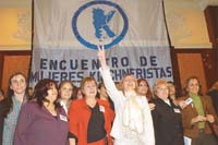 En el entrepiso del Hotel Panamericano hubo aroma a campaña. Y alusiones que todas las militantes del Primer Encuentro de Mujeres Kirchneristas descifraron con avidez. No por nada cuando Alicia habló de “prebendas” y “clientelismo” se despertaron cánticos contra Chiche. Y ni hablar de los aplausos cuando llamó a ponerse en el zapato de otro en el conurbano bonaerense, territorio duhaldista por excelencia.