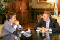 Kirchner y Duhalde cenaron en la residencia presidencial. Habían prometido mantener reserva, pero el dato fue filtrado desde el duhaldismo. Fue la primera reunión desde que Kirchner viajó a China.