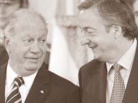 O sea que el peronismo está armando una especie de malentendido continental cuando el país que fue su cuna ya se lo toma con más calma. Se pueden agregar algunos condimentos a este cuadro de situación, porque Carlos Menem está en Chile y Eduardo Duhalde tiene su bunker en Uruguay, en la oficina central del Mercosur. Son los dos últimos caudillos del justicialismo, uno neoliberal y el otro ortodoxo. Menem dice en Chile que es perseguido por el gobierno de Kirchner, a quien acusa de ser más transversal que peronista, aunque es difícil que los chilenos entiendan esa categoría geométrica.
