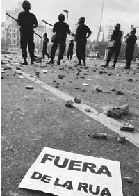 armas, defendió su gestión y abonó la tesis de una conspiración para derrocar a De la Rúa.