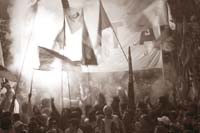 En los discursos hubo críticas a los medios de comunicación, menciones al PJ y a la “mafia corporativa de la vieja política”, cuestionamientos a Elisa Carrió, Mauricio Macri y Ricardo López Murphy y una defensa fervorosa de la gestión del Presidente. “Sabemos cuánto nos cuesta un acto de militancia y no un acto de aparato –sostuvo Depetris, santacruceño y amigo personal de Kirchner–. Buscamos la unidad de los sectores populares, pero no nos va a unificar sólo una expresión electoral.” Tras pedir un aplauso para “el pueblo iraquí que lucha contra la opresión”, Ceballos propuso “llevar el protagonismo popular a todas las políticas del Estado”. “La lucha de lo viejo con lo nuevo tiene que darse también en el Estado, es la única manera de evitar las burocracias anquilosadas”, planteó.
