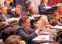 El radicalismo había adelantado que se abstendría. Ello obligaba al peronismo a conseguir sus propios números. En este punto, los justicialistas se encontraban ante el dilema de obtener una rápida aprobación del proyecto, pero, por otra parte, no podían aparecer concediendo a las reformas introducidas por los diputados la llave a la racionalidad y el equilibrio. Por eso las voces que en la anterior sesión defendieron la iniciativa ahora aparecieron divididas. Por un lado, Nicolás Fernández defendió las reformas. Y, por otro, la puntana Liliana Negre de Alonso aseguró que los cambios fueron un mamarracho, ya que los controles y la transparencia las había garantizado el proyecto original del Ejecutivo, aprobado por el Senado hace más de 60 días atrás.