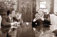 El encuentro de 40 minutos que se desarrolló en la Rosada, y del que participaron el jefe de Gabinete, Alberto Fernández, y el asesor duhaldista Eduardo Amadeo, le dio material a Duhalde para la conversación que mantendrá este domingo con el presidente venezolano Hugo Chávez. La perlita: la charla no será a puertas cerradas ni tampoco en el Palacio de Miraflores. Se realizará frente a las cámaras de televisión en Maracaibo, en el marco del programa Aló Presidente.