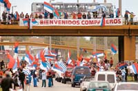 Ayer seguían llegando uruguayos desde el exterior y entre ellos el grupo de ciclistas frenteamplistas que salió desde Chile y atravesó Argentina a pedal. Lo paradójico es que uno de estos votantes deportivos es primo de Stirling, un arquitecto de 59 años, que estuvo preso durante la dictadura uruguaya y luego se exilió en Suecia y reside en Chile como funcionario de una ONG. “Elegimos esta forma de viajar, igual que los que vienen caminando desde Brasil, para marcar de una manera diferente este cambio que se avecina en la historia de nuestro país”, afirmó Roberto Stirling.“Espero hacer un asadito con él –agregó sobre su primo– para darle un abrazo y festejar su regreso a la escribanía y que la política en la familia me la deje a mí.”