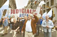 El presidente de la Corte Suprema, Enrique Petracchi, le pidió al Gobierno un aumento salarial para los jueces y empleados del Poder Judicial en una nota que envió a la Jefatura de Gabinete. No es que el juez supremo esté especialmente encantado con los crecientes reclamos gremiales, sino que apuesta a ganar una pulseada que mantiene con el Consejo de la Magistratura, que dispuso a comienzos de noviembre el reescalafonamiento de los trabajadores del sector y un aumento del diez por ciento en los haberes. Ambos organismos se atribuyen la facultad de elevar los sueldos. La Unión de Empleados de la Justicia de la Nación (UEJN) hará hoy un paro en defensa de lo dispuesto por el Consejo. Por ahora hay final abierto.