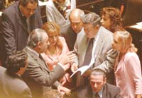 Entre las pocas voces en contra de la acusación figuró la de la diputada menemista por Salta Lelia Chaya, quien destacó que fundamentaba su voto “con la responsabilidad de la ética y por ser una militante que no seavergüenza de haber sostenido a un presidente peronista como fue (Carlos) Menem”. También, el ucedeísta cordobés Bossa se mostró en contra y advirtió que con la elevación al Senado del juicio político “se abre la puerta a quitar del medio a cualquier juez molesto”. Este diputado aseguró que la actual Corte Suprema ya podría ser enjuiciada por el fallo pesificador y criticó a la elegida Carmen Argibay. “Qué garantías me ofrece si es una exiliada de la Corte”, indicó.