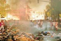 El conflicto entre los recolectores de residuos y las empresas del sector, que involucra al gobierno porteño y a toda la ciudad, se agravó ayer, después de que los trabajadores volvieran a rechazar la oferta empresaria, cumplieran un paro de siete horas y, a modo de protesta, volcaran y quemaran basura a lo largo de dos cuadras de la Avenida de Mayo, frente mismo a la sede del gobierno de la ciudad. Anoche, el personal nucleado en el gremio de los camioneros volvió a cumplir una jornada de trabajo a reglamento, lo que se traduce en la no recolección de basura en vastos sectores de la ciudad, como ocurrió en la víspera. El gremio reclama, en rigor, una suma de dinero equivalente a una indemnización por despido porque a partir del 16 de enero pasarán a depender de las nuevas empresas que se harán cargo de la limpieza de la ciudad. Las empresas y el gobierno porteño insisten en que esa compensación no corresponde dado que a los trabajadores se les garantizan la estabilidad laboral y sus derechos adquiridos. El gremio, por su parte, amenaza con un paro de camioneros a nivel nacional. La disputa continúa hoy en el Ministerio de Trabajo.