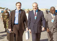 El canciller Rafael Bielsa se entrevistó ayer en Puerto Príncipe con el presidente provisional de Haití, Boniface Alexandre, quien le agradeció la gestión realizada por la Argentina para reforzar la ayuda internacional a aquel país. Durante el encuentro, Bielsa, que el miércoles pasado presidió una sesión especial del Consejo de Seguridad sobre el tema Haití, expuso la propuesta de cooperación para comprar productos elaborados allí a precios preferenciales. Después, el canciller, junto al secretario de Políticas Latinoamericanas, Darío Alessandro, compartió un almuerzo con el primer ministro haitiano, Gerard Latortue.