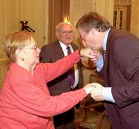 “Esta es la madre de José Luis Cabezas, conmovida porque ya se empezaba a hablar de la libertad de quienes asesinaron a su hijo. Lo vi muy emocionado a Kirchner. Es la primera vez que lo veo besar así, a la mano. El Presidente siempre se abraza, recibe el calor de la gente. Pero este gesto fue un punto intermedio entre el respeto y la emoción. Nunca lo había visto a Kirchner hacer algo así.”
