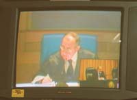 Superados los inconvenientes técnicos que el lunes impidieron la comunicación con España, arrancó finalmente la primera audiencia con un escenario poco usual para los tribunales porteños. Una gran pantalla ubicada en el centro de la sala –la misma donde se realizó durante tres años el juicio oral y público por el atentado a la AMIA– protagonizó la jornada. Ubicado atrás del juez Claudio Bonadío y el fiscal Carlos Rívolo, sorteados para presidir la audiencia, el telón permitió la comunicación de los tres testigos con los abogados y el magistrado español.