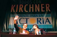 Una mesita, dos sillas, dos botellas de agua mineral. Todo iluminado por las luces cenitales del coqueto Teatro Ateneo. Más que la presentación de una candidatura, parecía la escenografía de una conferencia académica. O una obra de teatro minimalista. Sólo el telón exhibía alguna expresión política. Decía “Todos con Kirchner. Frente para la Victoria”. No había más asientos porque con dos alcanzaba. Ya la disposición del tablado dejaba claro que el acto tendría dos personajes principales. Uno estaba cantado, el canciller Rafael Bielsa, la estrella de la tarde, quien anunciaría el lanzamiento de su candidatura. El otro, el jefe de Gabinete, Alberto Fernández. Después de abrazarse y señalarse mutuamente para guiar los aplausos, se sentaron en la misma mesa. Los flashes hicieron relampaguear el teatro. Como una instantánea, la imagen mostró a los dos hombres fuertes del kirchnerismo en la ciudad. Y quizá –nunca se sabe– anticipó una futura competencia.