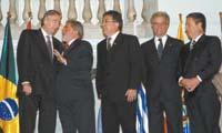 Kirchner habló desde Rosario, en un nuevo aniversario del Día de la Bandera. En la víspera se había retratado con Eduardo Duhalde en Asunción, durante la cumbre del Mercosur, desacreditando a los inquilinos de la Casa Rosada que aseguraban que no había lugar ni para las fotos.