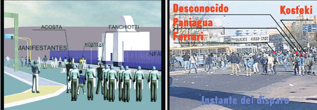 Son la prueba fundamental contra el comisario Alfredo Fanchiotti y su chofer, el cabo Alejandro Acosta: dos reconstrucciones de la Asesoría Pericial de La Plata que muestran cómo ocurrieron las muertes de Darío Santillán y Maximiliano Kosteki. En ellas, los peritos rearmaron, apoyándose en las imágenes tomadas durante la represión, las secuencias en las que los acusados dispararon contra los manifestantes.