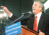 El Presidente llegó al barrio 9 de Julio, en Echeverría, junto con los candidatos bonaerenses a senadores del Frente para la Victoria, la primera dama Cristina Fernández de Kirchner y el ministro de Defensa, José Pampuro. También lo acompañaron el ministro del Interior, Aníbal Fernández, y el de Planificación, Julio De Vido. Los recibieron el gobernador Felipe Solá y el intendente local, Alberto Groppi, que es de la Unión Vecinalista, pero apoya al kirchnerismo. El acto fue en Parque Fronteras, que pertenece al sindicato de los trabajadores del plástico, donde se concentraron cientos de personas con banderas argentinas. Dieron la nota las chicas de “Los ángeles de Cristina” (ver aparte).