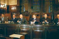 La sala de audiencias del Palacio de Justicia, donde hace veinte años se juzgó a las juntas militares, estaba repleta. El público era una mescolanza: había familiares de las víctimas, ex policías bonaerenses que estuvieron presos en la causa AMIA como Juan José Ribelli y Raúl Ibarra, funcionarios del Consejo de la Magistratura, miembros de la Unidad AMIA del Ministerio de Justicia, amigos del juez removido, el ex titular de la mutual judía Abraham Kaul y periodistas. Pero faltaba la figura central: el propio Juan José Galeano. Tampoco hubo dirigentes de la DAIA.