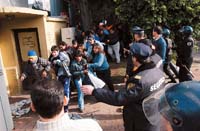 La Policía Federal reprimió ayer a un grupo de piqueteros que se concentró frente a la Rural. Hubo quince detenidos y tres heridos.
