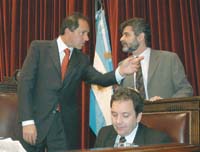 El ministro de Educación, Daniel Filmus, y el director general de Escuelas Bonaerenses, Mario Oporto, arribaron antes de que comenzara la discusión del proyecto. Abrazados y ansiosos, siguieron junto a los mozos de la cafetería, el final de San Lorenzo y Boca. Fanáticos del Ciclón, pudieron festejar con la prolongación de la paternidad sobre los devaluados xeneizes.
