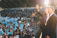 “El 23 de octubre cada mendocino, cuando se acerque a la urna, acuérdese que hay un pingüino que necesita que lo ayuden”, dijo ayer el presidente Néstor Kirchner en un acto en Mendoza en el que anunció obras y subsidios junto al gobernador Julio Cobos. “Desde el primer día comenzamos con la Corte Suprema que hoy es independiente y la que tenemos que hacer independiente en todo el país”, resaltó. “El pueblo argentino hoy sabe que no hay más Obediencia Debida y Punto Final, porque un gobierno nacional junto a su pueblo se puso firme como corresponde”, concluyó el Presidente.