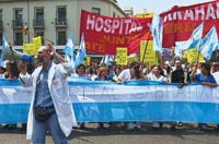 En la movilización, que fue desde la 9 de Julio y Belgrano a la Plaza de Mayo, participaron el titular de la CTA, Víctor De Gennaro; el secretario general de ATE, Pablo Micheli, y el diputado Claudio Lozano, quien planteó que en términos reales “el presupuesto para la salud está en la mitad de lo que estaba en 1998”.